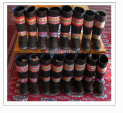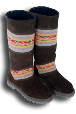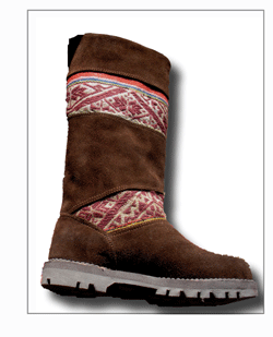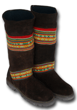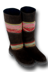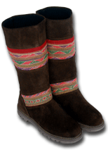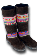 When we walked into Mariano's boot shop in Cucso we knew we were looking at quality products. I trained as an apprentice bootmaker in Austria, so was familiar with the traditional European bootmaking techniques when I saw them. And here they were in Cusco, Peru, in the form of high quality suede boots, custom made right in the shop. Mariano takes an outline of one's foot, then gets to work. While we lived in Cusco we talked with him to see if we could order from the states. At an international fair we had put the boots out and they proved so popular, we decided to put them on our website. All proceeds go to the bootmaker, and to Mountain Spirit Institute to further our non-profit educational mission and programs.