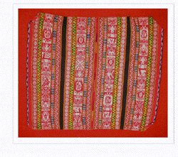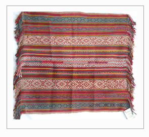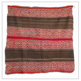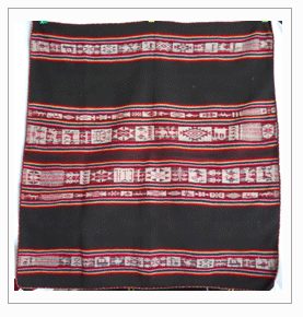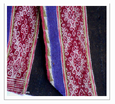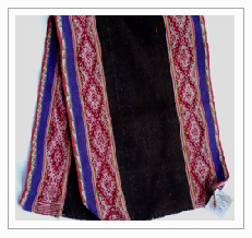 - Done on backstrap looms, two panels then stiched together.