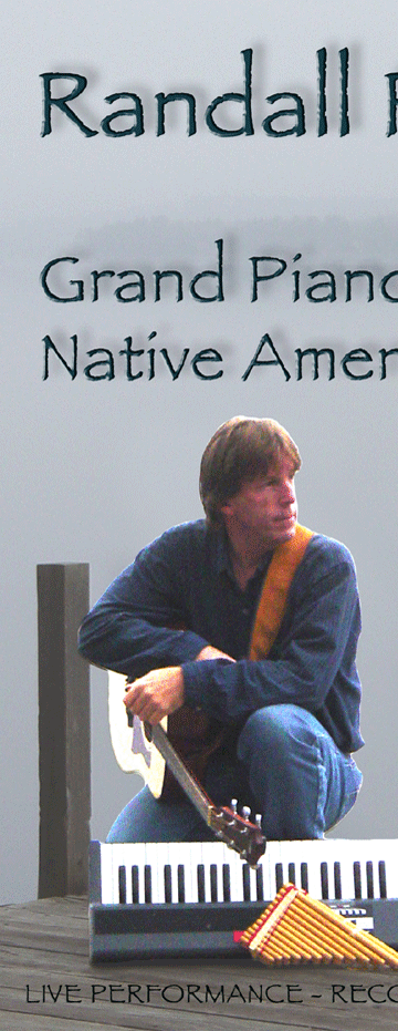 One of Randall's favorite performance styles is world instrumental music- He follows a drum beat set by two or three accompanying drummers, then plays the Native American Flute, Zampona, Grand Piano or Synth. Percussion is the driving force, with his other instuments following, to create a sense of presence and energy for the audience.