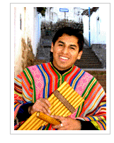 Guillermo Seminario is the musical director "Chimu's", and coordinates the Cusco Music Exchange Program for MSI. He is a talented performer, having played various instruments since an early age. His interest in music led him to particpate in five different cultural/educational organizations for a number of years. Guilllermo also makes professional grade instruments such as Zamponas, pan pipes, flutes and charangos. He, and others, will be in the USA performing and teaching in the Fall of 2007. Guillermo states, "Just as we depend upon the sun, we can't exist without the strength, warmth and inspiration of music." Guillermo speaks Spanish and English.